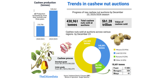 According to him, under-grade cashews traded at between Sh1,700 and Sh2,470. Further CBT figures show that Mtwara remains the leading cashew-producing region, having traded 232,509.38 tonnes valued at Sh694.67 billion.