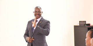 One of the facilitators, High Court Judge (Commercial Division) Dr Cleophace Morris, speaking during the training in Lushoto yesterday. PHOTO | COURTESY