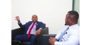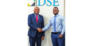 Dar es Salaam Stock Exchange CEO Peter Nalitolela (left) and Mwananchi Communications Ltd Executive Editor Mpoki Thomson during an interview.
