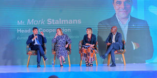 Head of Cooperation at the European Union Delegation to Tanzania, Mr. Marc Stalmans (left), speaking during a panel discussion. of the unveiling ceremony of new investees under the FUNGUO Innovation Programme held in Dar es Salaam. alongside Ms. Anna Wilson, Development Director at the British High Commission; Ms. Sanna-Liisa Taivalmaa, Head of Cooperation at the Embassy of Finland; and Mr. Joseph Manirakiza, FUNGUO Programme Manager at UNDP Tanzania, PHOTO | CORESPONDENT