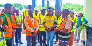 Deputy minister of State in the President’s Office – Planning and Investment, Dr Pius Chaya (second left), being guided around various areas of the Buzwagi Industrial Park. PHOTO | COURTESY