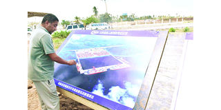 An engineer at the Ministry of Works in Zanzibar, Mr Salum Udi Mwinyi, shows a sketch of Mangapwani port during a recent visit. PHOTO|COURTESY