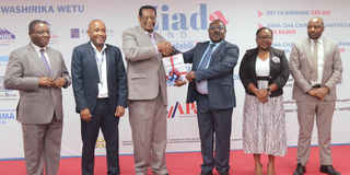 CMSA Chief Executive Officer Nicodemus Mkama hands over the official offer document to APeF Acting Board Chairman Dr. Hamisi Kibola at the launch of the Ziada Fund in Dar es Salaam on January 26, 2026. Looking on (from left) are Mfaume Kimario (APeF CEO), Byford Mutikwasa (Alliance Life CEO), Tupokigwe Mwalwisi (NBC), and Lusungu Mkolanguzi (Bank of Tanzania). PHOTO | THE CITIZEN CORRESPONDENT