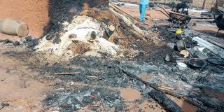 Burned remains of structures, after gunmen stormed Kasuwan Daji market, looted food items, and killed or abducted several people, according to local police report, in Sukumbara village, Niger State, Nigeria, January 4, 2026. Picture taken with a mobile phone. PHOTO | REUTERS