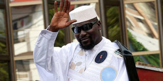 Guinean leader Mamadi Doumbouya waves after submitting his candidacy at the Supreme Court ahead of the presidential election scheduled for December 28, in Conakry, Guinea