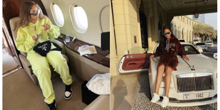 Two Instagram posts show Brenda Biya aboard a private jet with a Prada bag, in an Instagram post, dated October 26, 2022 and Brenda Biya posing on top of a Rolls Royce, in an Instagram post, dated January 15, 2020.