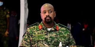 General Muhoozi Kainerugaba, the son of Uganda's President Yoweri Museveni, who leads the Ugandan army's land forces, looks on during his birthday party in Entebbe, Uganda May 7, 2022. PHOTO | REUTERS