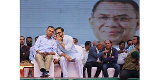 Bangladesh Nationalist Party (BNP) chairman Tarique Rahman sits on stage before delivering his speech at an election campaign rally, ahead of the national election at Pallabi, in Dhaka, Bangladesh, February 8, 2026.