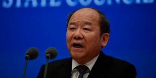 China’s National Bureau of Statistics official Ning Jizhe speaks during the release of the copy of the Outcome of the Seventh National Population Census in Beijing on May 11, 2021.