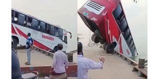 Local authorities said the bus had been waiting at the terminal when a smaller ferry allegedly struck the pontoon, causing the bus to slide into the water.