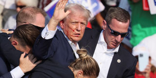 Republican presidential candidate and former U.S. President Donald Trump is assisted by U.S. Secret Service personnel after gunfire rang out during a campaign rally at the Butler Farm Show in Butler, Pennsylvania, U.S., July 13, 2024.