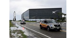 A SpaceX Starship spacecraft rolls out toward its launch pad past the Starbase Manufacturing Facility before its 10th test flight from the company's complex in Starbase, Texas, U.S., August 23, 2025.