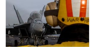 An F/A-18F Super Hornet prepares to launch from the flight deck of the US Navy Nimitz-class aircraft carrier USS Abraham Lincoln at an undisclosed location during the Operation Epic Fury attack on Iran, March 31, 2026.