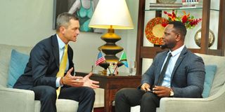 Acting US Ambassador to Tanzania, Andrew Lentz, responds to a question during an exclusive interview hosted by Mwananchi Communications Ltd Executive Editor, Mpoki Thomson.
