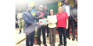 Rukwa Regional Commissioner Makongoro Nyerere (centre) poses for a photo with government officials and Tanzania–Chinese health experts during the launch of a free medical clinic conducted recently by doctors and health practitioners from both countries in Sumbawanga, Rukwa Region. PHOTO|COURTESY