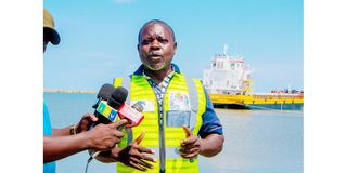 Assistant Port Manager at Karema Port, Mr Anthony Poyo, addresses journalists on four large cargo vessels constructed at the facility. PHOTO | COURTESY