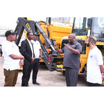The General Manager of GF Vehicle Assemblers, Ezra Mereng (fourth right), hands over part of a donation consisting of five computers and special sanitation equipment to the Acting Medical Officer in Charge of Tumbi Hospital, Dr Silas Msangi, during an event held at the hospital in the Pwani Region. PHOTO | SAID KHAMIS