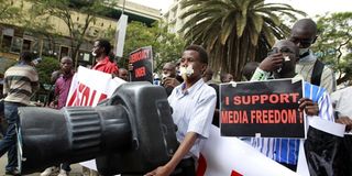 Media rights activists during a past demonstration calling for press freedom. Human Rights Watch says civic space is increasingly restricted worldwide through legal and administrative measures rather than overt force. PHOTO | COURTESY