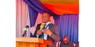 Acting Permanent Secretary in the Ministry of Education, Science and Technology, Dr Ephraim Simbeye, addresses a gathering of education stakeholders hosted by TEN/MET during the closing of the GAWE 2026 activities in Momba District in Songwe region. PHOTO|JACOB MOSENDA
