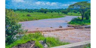 A view of the old bridge over the Tarangire River in Tarangire National Park, which was previously in use but is now submerged, and has been out of service since this year following the construction of the new Matete Bridge, which has helped eliminate the difficulties tourists previously faced when visiting the park.
