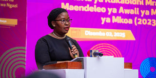 Ms. Esther Ndyetabira, Technical Director for the ECD Project, addressing participants during the Mbeya event on behalf of the Country Director of Pact Tanzania.