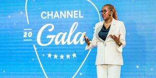 Angelica Pesha, Chief Executive Officer of Mixx by Yas, addresses guests (not in the picture) during a dinner gala event for super agents and partners held in Dar es Salaam which also marked the launch of the Wakala App, a first-of-its-kind platform designed to transform how agents manage their businesses