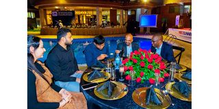 NBC Bank’s Head of Corporate Banking Mr Elvis Ndunguru (right) engages in conversation with several clients of the bank in Arusha Region during a dinner event organised by the bank for its major clients including corporations, individual clients and various institutions; the event aimed to discuss business opportunities, introduce new services and enhance clients’ understanding of the benefits and advantages of the services; the gathering, hosted by the bank's Corporate and Investment Banking (CIB) team, took place over the weekend in Arusha