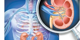 A picture shows the location of kidneys in a human body and a cross section of the organ. Researchers have given reasons why kidney transplant fails. photo | FILE