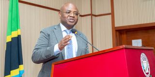 Minister of State in the President’s Office (Planning and Investment), Prof Kitila Mkumbo, speaks on Wednesday, April 15, 2026, in Dodoma during a high-level meeting between government officials and private sector leaders aimed at strengthening collaboration under the national Vision 2050 agenda. The private sector has called for bank lending rates to be lowered to single digits, arguing that affordable credit is critical to unlocking the country’s ambition of becoming a $1 trillion economy by 2050. PHOTO | KATARE MBASHIRU
