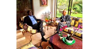 The author (January Makamba) and Raila Odinga at a past meeting. PHOTO|FILE