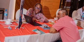 A parent listens attentively to a representative from one of the overseas universities during a Study Fair organised by EduKwanza. PHOTO | JACOB MOSENDA