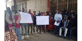 Workers of the Katumba-based Rungwe Tea Growers’ Factory in Rungwe District, Mbeya Region, hold placards during protests against dismissals, demanding payment of their outstanding dues amounting to over Sh2.1 billion. PHOTO|SADDAM SADICK