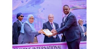 President Samia Suluhu Hassan, receives the Honorary Humanitarian Neurosurgery Award from the President of the Tanzania Neurosurgeons Society (TNS), Dr Othman Kiloloma, during the opening ceremony of the Second International Conference of the World Federation of Neurosurgical Societies (WFNS) at the Julius Nyerere International Convention Centre (JNICC) in Dar es Salaam on April 16, 2026. PHOTO | COURTESY