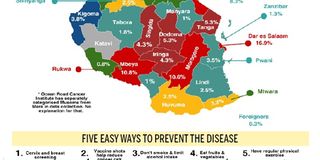 The least affected regions are Geita (0.5 per cent), and three others, Kagera, Rukwa and Simiyu, with each carrying 0.76 per cent of the cancer burden in the country.