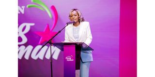 Mwananchi Communications Limited Managing Director, Rosalynn Mndolwa-Mworia, speaks at the RWI event last month. PHOTO | FILE