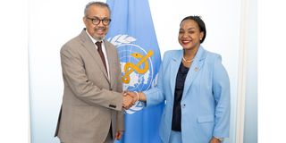 World Health Organization Director-General Tedros Adhanom Ghebreyesus presents an award to Executive Director of the Doris Mollel Foundation, Ms Doris Mollel at WHO headquarters in Geneva on March 18, 2026.
