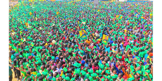 A section of the crowd that attended the CCM election campaign rally addressed by the party’s Union presidential candidate Samia Suluhu Hassan in Sumbawanga, Rukwa Region, yesterday. PHOTO | COURTESY