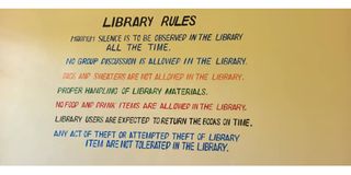 A reader saw this notice posted on the wall of a school library. We agree that, besides the numerous linguistic challenges, the repetitive use of the word LIBRARY should have been avoided. Our suggestion is: Library materials must be handled with care/Borrowed books must be returned on time/Theft of library materials will not be tolerated. Trust signwriters! PHOTO | COURTESY