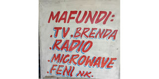 We captured this one in Dar’s Kinondoni District. This signpost is meant to invite the public to bring for repair their electronic equipment. The mafundi (artisans) here are good at fixing, among other equipment, BLENDERS (not “brendas”). Trust signwriters! PHOTO | AMS