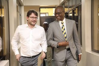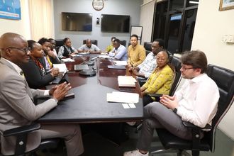 Bolt President Jevgeni Kabanov expresses himself during a meeting with MCL senior management. He was accompanied by the ride-hailing firm’s regional press officer for East Africa, Marion Wambua (second left), country manager Charles Matondane (left), and senior public policy manager for East and Southern Africa, Andrew Ihsaan (not in view). Third right is MCL’s managing director Bakari Machumu, corporate affairs and marketing manager Vivian Temi (second left), and executive editor Victor Mushi. PHOTO | SAID KHAMIS
