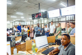 A group of master’s degree students from the Western Norway University of Applied Sciences pose for a photo during their academic visit to Mwananchi Communications Limited offices in Dar es Salaam yesterday. Holding the banner is The Citizen newspaper Managing Editor, Mpoki Thomson (R), and MCL’s Transformation manager, Amir Simbano. PHOTO | ALPHONCE TENDEGA