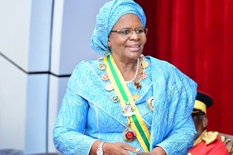 Namibia's first female President, Netumbo Nandi-Ndaitwah gestures during her inauguration at the State House in Windhoek, Namibia, March 21, 2025. PHOTO REUTERS