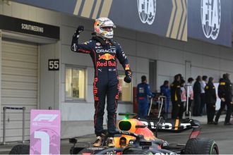 Red Bull Racing's Dutch driver Max Verstappen celebrates after his victory at the Formula One Japanese Grand Prix at Suzuka, Mie prefecture on October 9, 2022.