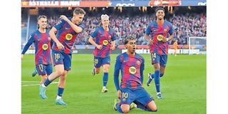 Substitute Marc Bernal, also 18, completed the scoring with a fine solo run and low finish. Barcelona moved to 58 points, four clear of second-placed Real Madrid, who play Valencia on Sunday.