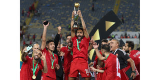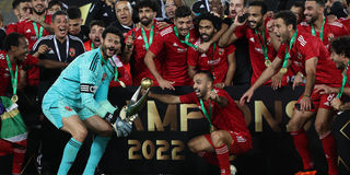 Ahly's players celebrate with the trophy after winning the CAF Champions League final football match between Morocco's Wydad AC and Egypt's Al-Ahly at the Mohammed V Stadium in Casablanca on June 11, 2023. PHOTO | AFP