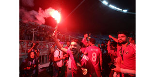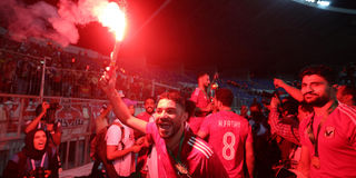 Ahly's Egyptian defender Yasser Ibrahim celebrates with a flare after winning the CAF Champions League final football match between Morocco's Wydad AC and Egypt's Al-Ahly at the Mohammed V Stadium in Casablanca on June 11, 2023. PHOTO | AFP
