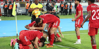 Ahly's players celebrate their first goal during the second-leg of the CAF Champions League final football match between Morocco's Wydad AC and Egypt's Al-Ahly at the Mohammed V Stadium in Casablanca on June 11, 2023. PHOTO | AFP