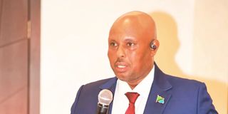 Tanzania Football Federation president Wallace Karia (second left) addresses delegates and football stakeholders during the federation’s recent general assembly, outlining key developments, governance matters and future plans aimed at strengthening football administration and development in the country. PHOTO | COURTESY