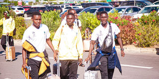 Players of the Tanzania national under-17 football team arrive at Terminal Three of Julius Nyerere International Airport ahead of their departure to Egypt as they prepare for the upcoming Africa U-17 Cup of Nations scheduled to take place in Marrakesh, Morocco, from April 25 to May 15. PHOTO | COURTESY