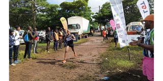 Winner of the women’s 42km race, Vaileth Kigasi of Talenti Club, crosses the finish line in 2:42:10 at the General Tyre grounds in Arusha. PHOTO | BERTHA ISMAIL